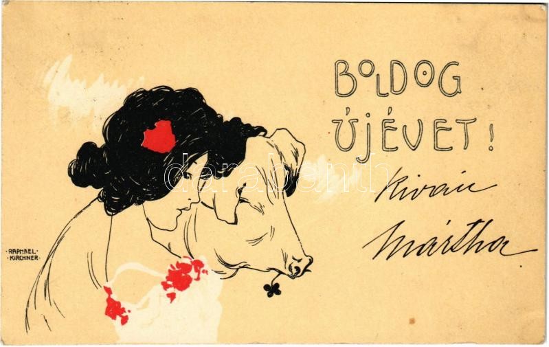 Boldog Újévet! / Art Nouveau lady and pig. New Year greeting art postc... https://www.darabanth.com/hu/374-Gyorsarveres/374.0/Kepeslapok/Muveszlapok~2000089/Boldog-Ujevet-Art-Nouveau-lady-and-pig-New-Year-greeting-art-postcard-litho-s-Raphael-Kirchn~II2190425