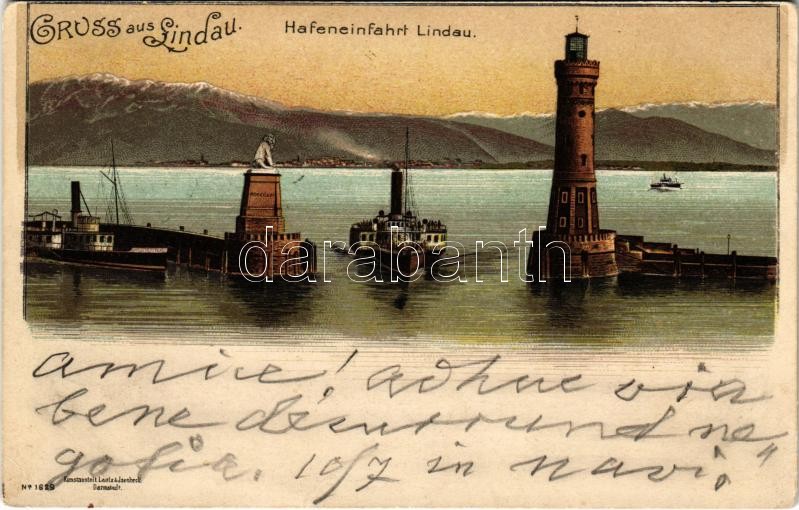1899 Lindau, Hafeneinfahrt Lindau / port, harbor entrance, steamship. ... https://www.darabanth.com/hu/374-Gyorsarveres/374.0/Kepeslapok/Nemetorszag~2000052/1899-Lindau-Hafeneinfahrt-Lindau-port-harbor-entrance-steamship-Kunstanstalt-Lautz-Isenbeck-~II2189274