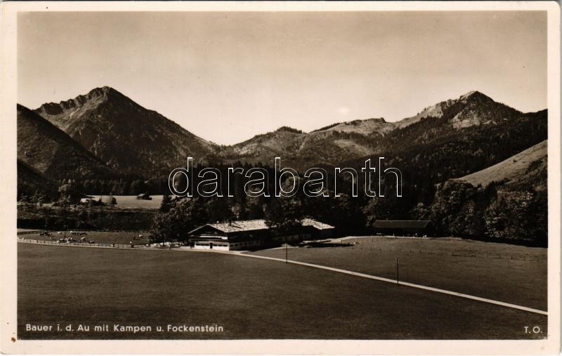 Leírás: Bad Wiessee, Bauer in der Au mit Kampen u. Fockenstein / mountains, cattle. Aufn. u. Verlag Photo-Ostermann