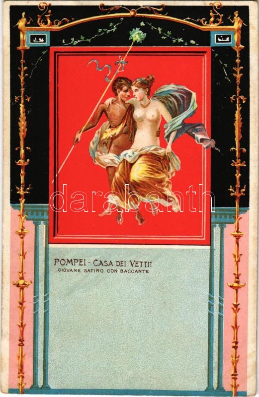 Leírás: Pompei, Pompeii; Casa dei Vettii, Giovane satiro con baccante / House of the Vettii, young satyr with bacchant. R. & C. A 3025. litho (fl)