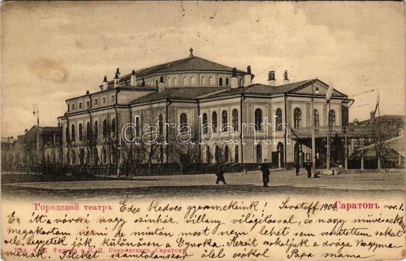 1904 Saratov, Saratoff, Saratow; Gorodskoy Teatr / city theatre, flag,... https://www.darabanth.com/hu/374-Gyorsarveres/374.0/Kepeslapok/Oroszorszag~2000055/1904-Saratov-Saratoff-Saratow-Gorodskoy-Teatr-city-theatre-flag-street-view-fl~II2189500