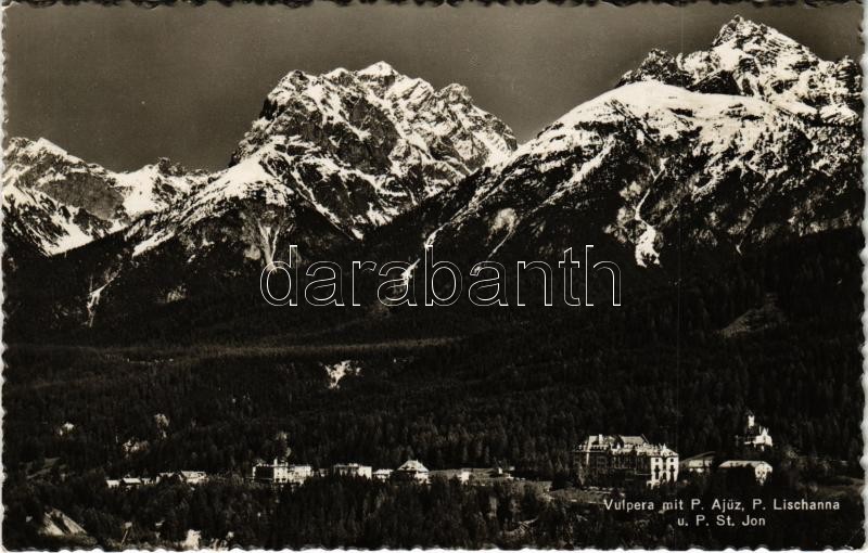 Leírás: Tarasp (Scuol), Vulpera mit P. Ajüz, P. Lischanna u. P. St. Jon / hotel, general view, mountains. Photoglob-Wehrli & Vouga & Co. 8856.