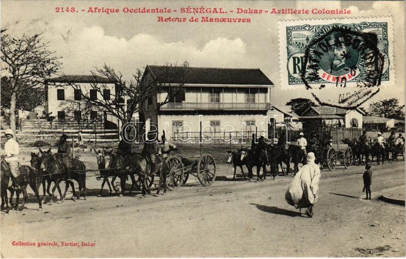 Dakar, Artillerie Coloniale Retour de Manoeuvres / colonial artillery,... https://www.darabanth.com/hu/374-Gyorsarveres/374.0/Kepeslapok/Szenegal~2000060/Dakar-Artillerie-Coloniale-Retour-de-Manoeuvres-colonial-artillery-horse-drawn-carriages~II2187591