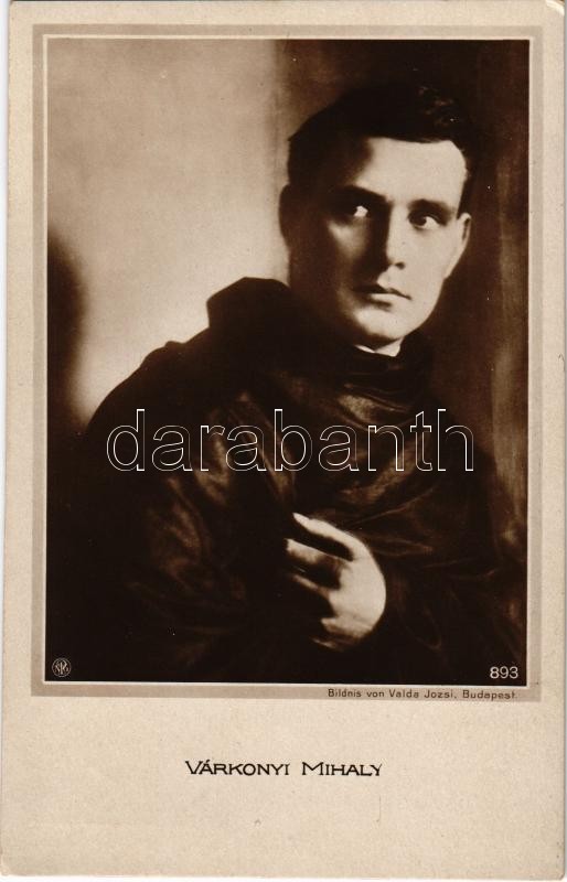 Várkonyi Mihály. Valda Józsi felvétele, Budapest. N.P.G. 893. (EK) https://www.darabanth.com/hu/374-Gyorsarveres/374.0/Kepeslapok/Szinesz~2000096/Varkonyi-Mihaly-Valda-Jozsi-felvetele-Budapest-NPG-893-EK~II2184150