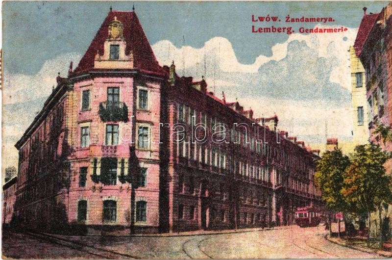 Lviv, Lwów, Lemberg; Gendarmerie, tram / Zandamerya