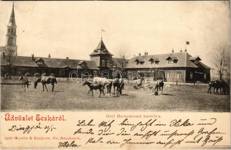 1899 Écska, Ecka; Gróf Harnoncourt kastély, ménes. Gresits & Kraly... https://www.darabanth.com/hu/374-Gyorsarveres/374.0/Kepeslapok/Vajdasag~2000009/1899-Ecska-Ecka-Grof-Harnoncourt-kastely-menes-Gresits-Kralyev-kiadasa-castle-stud-far~II2190983