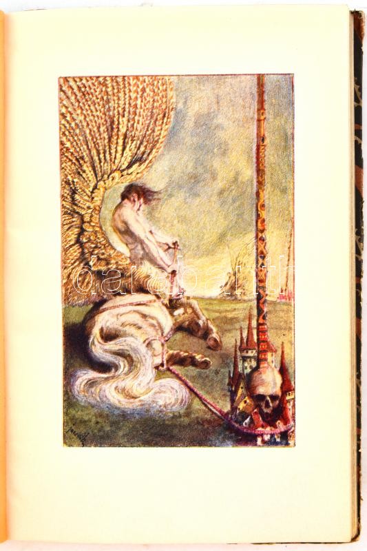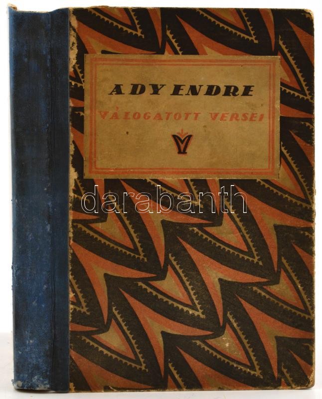 Ady Endre: Ady Endre válogatott versei. Válogatta Dóczy Lajos. Illusztrálta Jaschik Álmos. Bp.,1921, Pallas, 234+2 p. + 8 t. (Jaschik Álmos színes, feliratos hártyapapírral védett illusztrációi). Félbőr-kötésben, kopott borítóval, pótolt gerincel.
