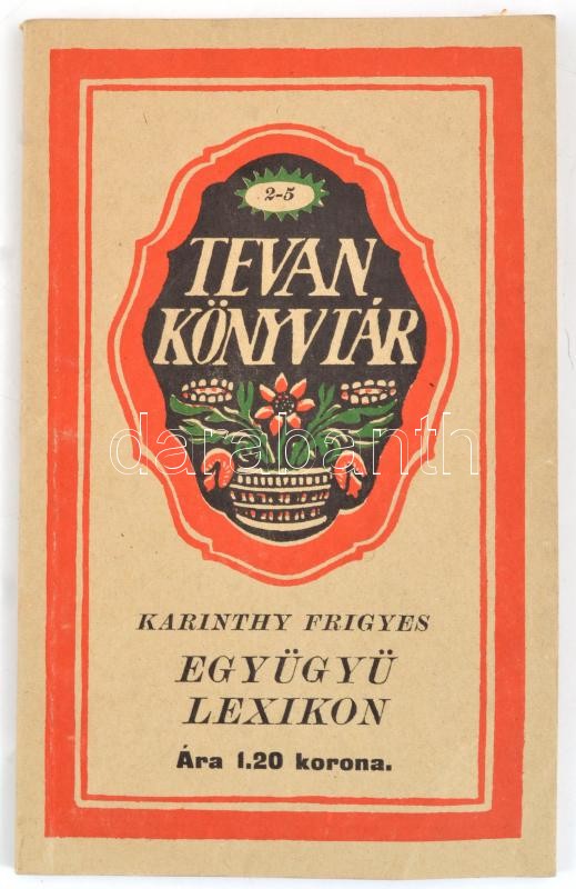 Karinthy Frigyes: Együgyű lexikon. Bp., 1997, Háttér Kiadó. Az 1912-es kiadás (Békéscsaba, Tevan [Tevan Könyvtár 2-5.].) reprintje, az 1918-as kiadás borítójának felhasználásával. Bp., 1997., Háttér. Kiadói papírkötésben, jó állapotban.