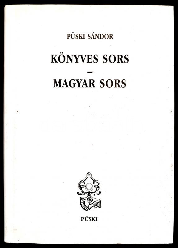 Püski Sándor: Könyves sors - magyar sors. Bp.,2002, Püski. Kiadói egés... https://www.darabanth.com/hu/374-Gyorsarveres/374.0/Konyvek/Konyvek-Egyeb-ritkasagok~1000023/Puski-Sandor-Konyves-sors-magyar-sors-Bp-2002-Puski-Kiadoi-egeszvaszon-kotes-kiado~II2186956