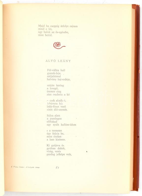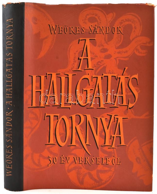Weöres Sándor: A hallgatás tornya. Harminc év verseiből. A kötet könyvdíszeit Weöres Sándor rajzolta. Bp.,1956, Szépirodalmi Könyvkiadó, 431 p. Első kiadás. Kiadói egészvászon-kötés, kiadói papír védőborítóban. Megjelent 3000 példányban.