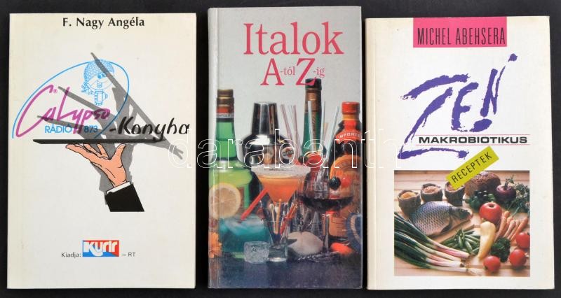 Leírás: 3 db szakácskönyv: Italok A-Z-ig, Zen, makrobiotikus receptek, Calypso rádió konyha