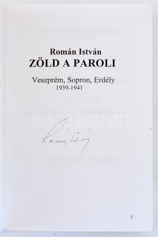 Román István: Zöld a paroli. Veszprém, Sopron, Erdély. 1939-1941. hn., én., nyn. Második, javított kiadás. Kiadói papírkötés, a gerincen olvasásból adódó deformálás nyomaival. A szerző által aláírt.