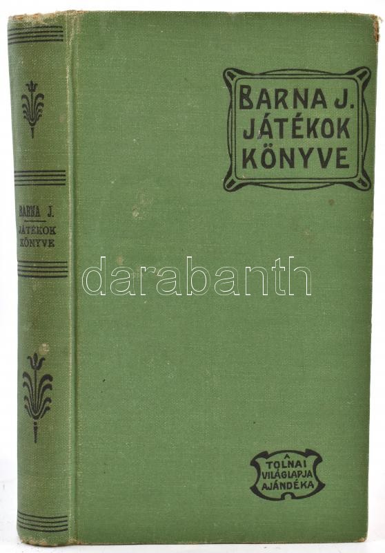 Barna Jakab: A játékok könyve a nagyközönség számára. Bp., Magyar Kereskedelmi Közlöny Hírlap- és Könyvkiadó-vállalat. Kiadói egészvászon kötés, gerincnél teljesen levált, védőlap teljesen kivált.