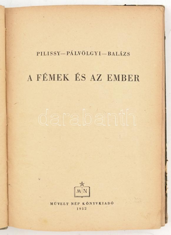 Pilissy Lajos-Pálvölgyi Árpád-Balázs Fülöp: A fémek és az ember. Bp., ... https://www.darabanth.com/hu/374-Gyorsarveres/374.0/Konyvek/Konyvek-Technika~1000015/Pilissy-Lajos-Palvolgyi-Arpad-Balazs-Fulop-A-femek-es-az-ember-Bp-1952-Muvelt-Nep-~II2149232