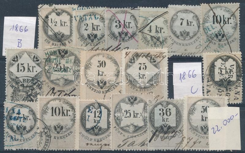 Leírás: 1866 Kis osztrák-magyar okmánybélyeg tétel 17 db bélyeg (22.000)