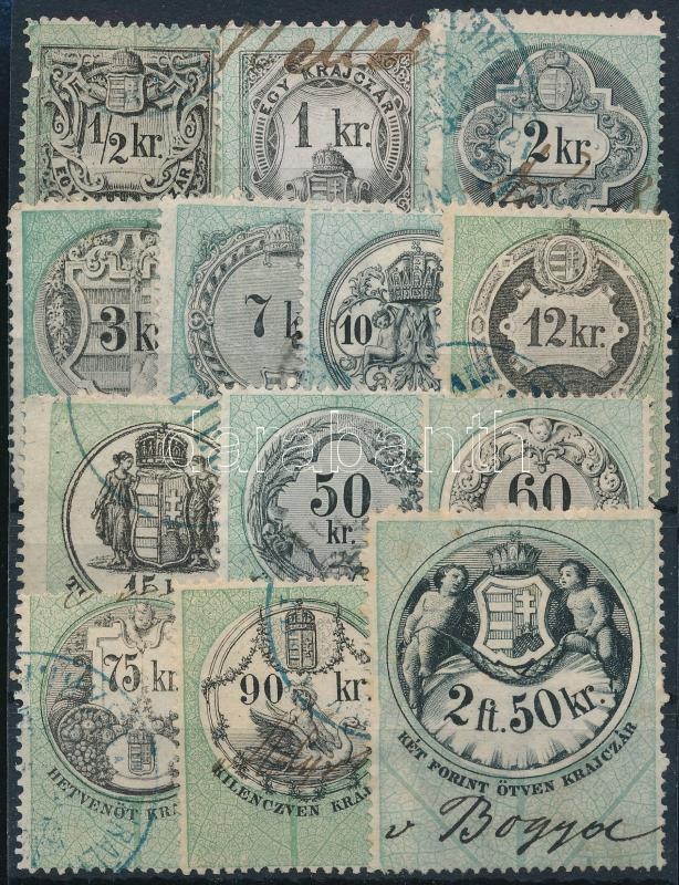 Leírás: 1868 13 db klf magyar okmánybélyeg