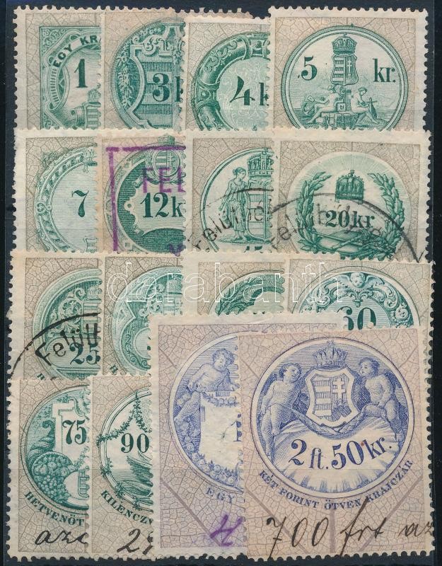 Leírás: 1891 16 db klf magyar okmánybélyeg