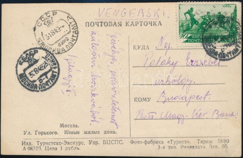 Leírás: 1949 Szilágyi II. a Vasas labdarúgójának autográf lapja Moszkvából