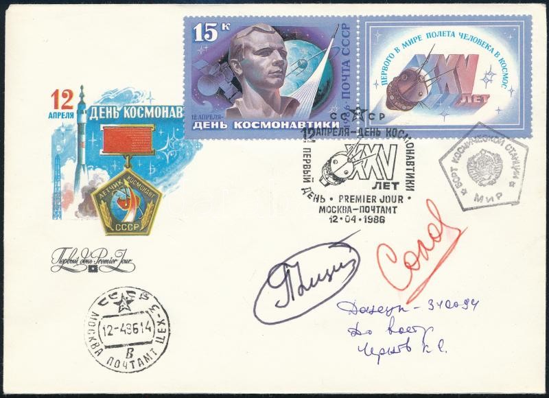 Vlagyimir Szolovjov (1946- ) és Leonyid Kizim (1941-2010) szovjet űrhajósok aláírásai emlék borítékon / Signatures of Vladimir Solovjov (1946- ) and Leonid Kizim (1941-2010) Soviet astronauts on cover