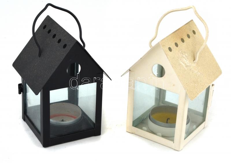 Leírás: 2 db ház alakú fém mécsestartó, jó állapotban
