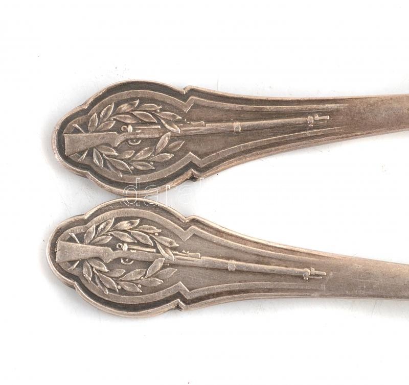 Leírás: 2 db jelzett fém kiskanál puska, vadász motívummal. 13 cm