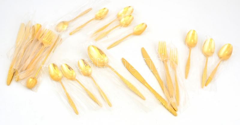 Leírás: 27 darabos aranyozott fém evőeszköz készlet. 4 személyes, bontatlan csomagolásban, eredeti dobozzal