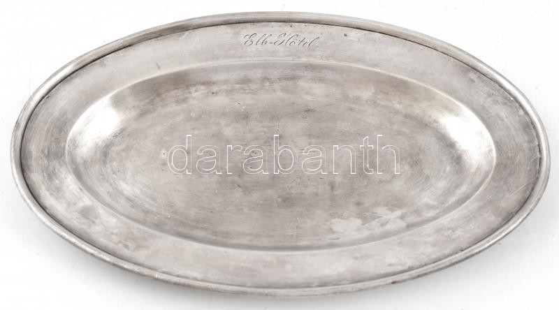 Leírás: Alpakka tálca, "Elb-Hotel" felirattal, kopottas állapotban, 18,5x30 cm