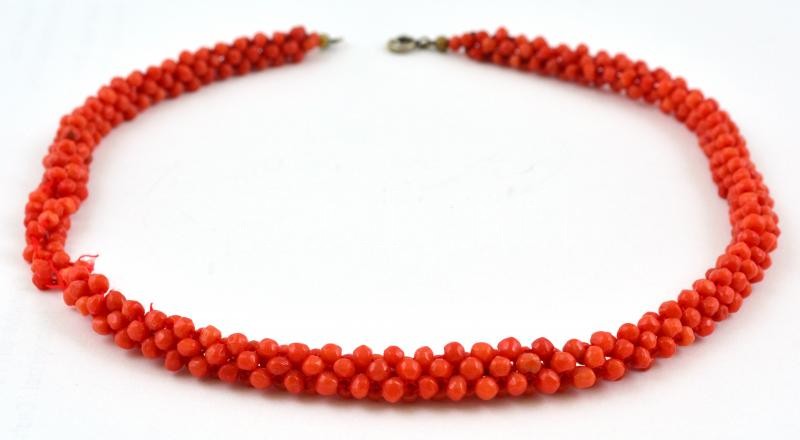 Apró szemű korall nyaklánc, szakadással, h: 41 cm https://www.darabanth.com/hu/374-Gyorsarveres/374.0/Mutargy-papirregiseg-egyeb/Bolhapiac~12/Apro-szemu-korall-nyaklanc-szakadassal-h-41-cm~II2185062
