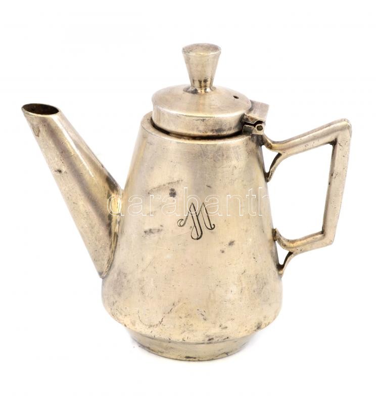Leírás: Art deco alpakka kiöntő, horpadásokkal, kopottas állapotban, m: 11,5 cm