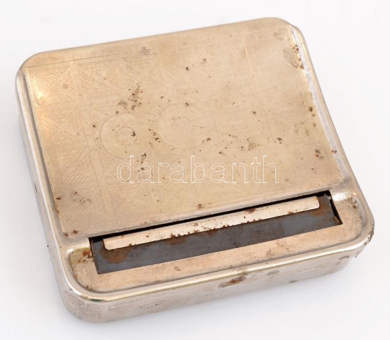 Dohánytartó és sodró, fém, kissé rozsdás, 8x9x2 cm https://www.darabanth.com/hu/374-Gyorsarveres/374.0/Mutargy-papirregiseg-egyeb/Bolhapiac~12/Dohanytarto-es-sodro-fem-kisse-rozsdas-8x9x2-cm~II2191198