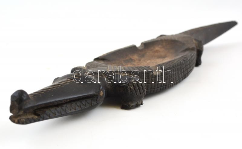 Faragott fa krokodil hamutartó, h: 36,5 cm