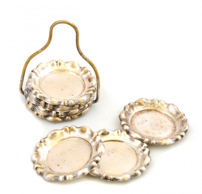 Leírás: Fém pohár alátét, 12 db, kopottas állapotban, d: 7 cm