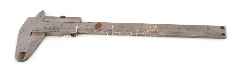 MOM fém tolómérő, rozsdafoltokkal, h: 23 cm