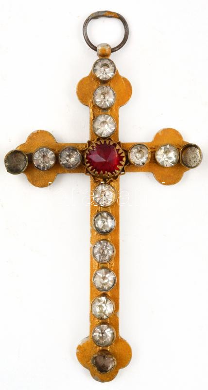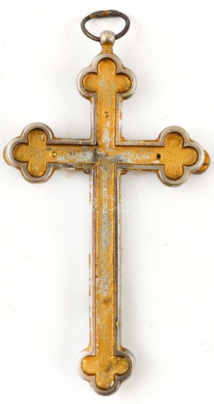 Leírás: Ortodox stílusú fém kereszt, hiányos díszítéssel, 13,5×7,5 cm