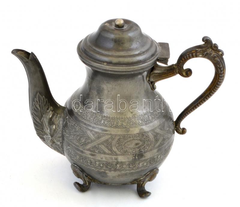 Leírás: XIX. sz. vége: Díszes ón kávés kanna lábakon. 16 cm