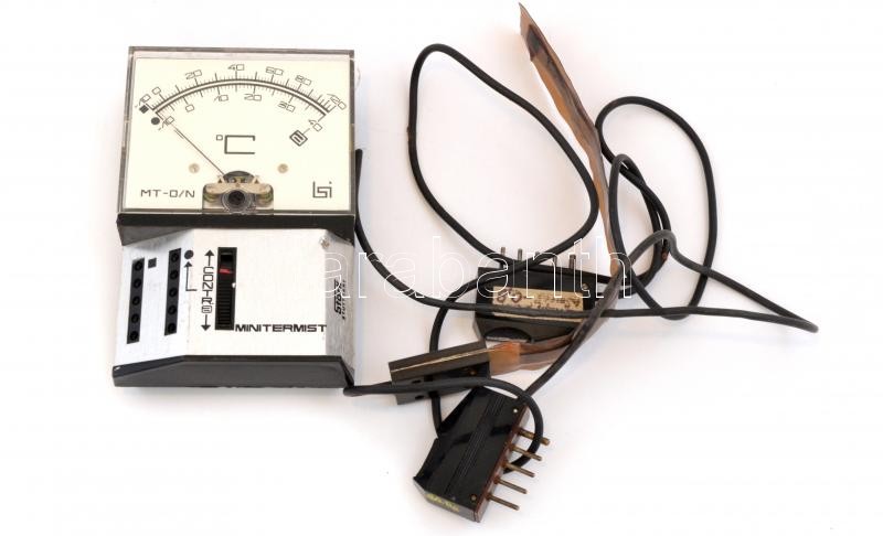 cca 1990, Német gyártmányú, hőmérsékletet Celsiusban mérő, Störk Stuttgart Minitermist műszer. 2 db kábellel, egyik kábel vége sérült, hiányos. Műanyag házban, egy kisebb sérüléssel, nem kipróbált.