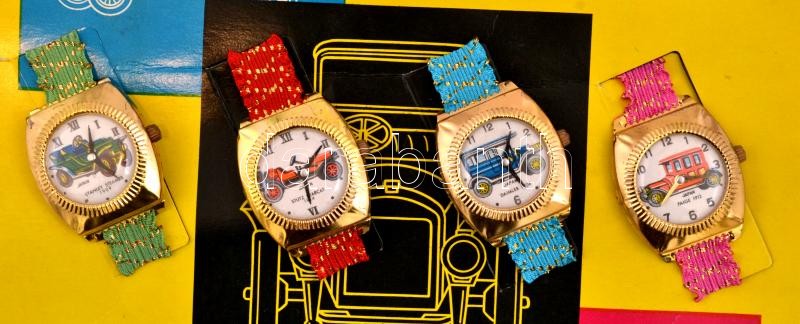 Leírás: cca 1980 "Vintage Car Collection Officer Watch", 12 db japán játékóra, eredeti kartonlapon, változó állapotban.