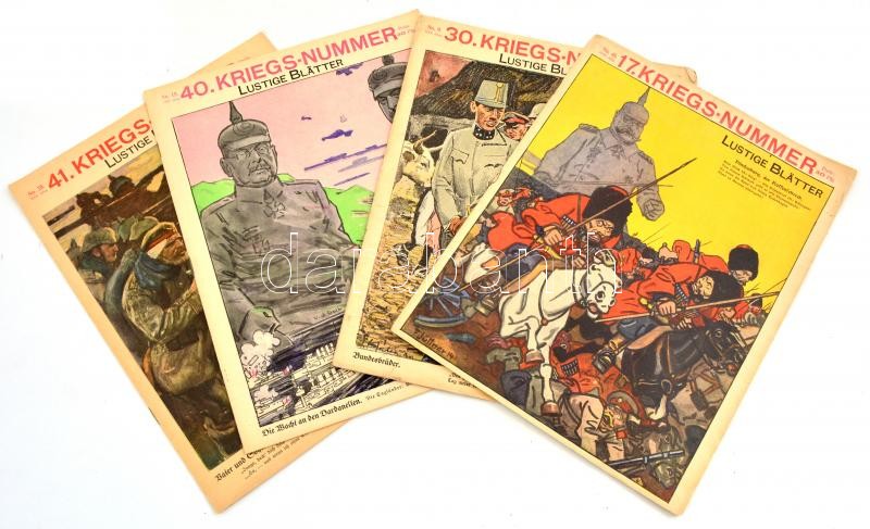 1914-1915 Kriegs-Nummer Lustige Blätter, szatirikus grafikus német újs... https://www.darabanth.com/hu/374-Gyorsarveres/374.0/Mutargy-papirregiseg-egyeb/Militaria~2000108/1914-1915-Kriegs-Nummer-Lustige-Blatter-szatirikus-grafikus-nemet-ujsagok-4-db~II2189004