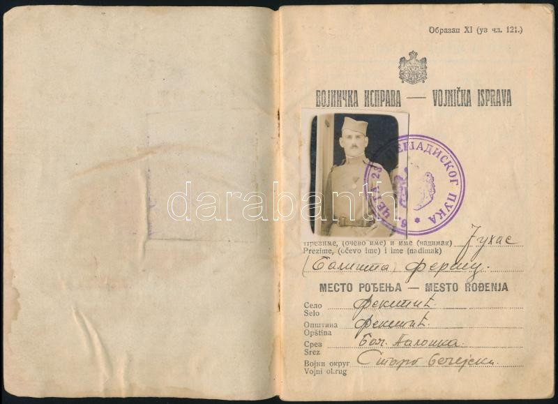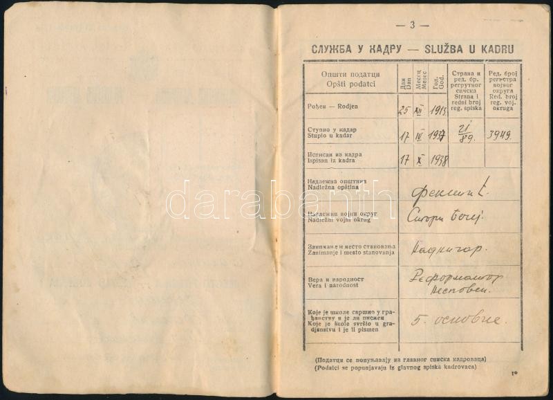 1938 Jugoszláv katonakönyv magyar származású személy részére https://www.darabanth.com/hu/374-Gyorsarveres/374.0/Mutargy-papirregiseg-egyeb/Militaria~2000108/1938-Jugoszlav-katonakonyv-magyar-szarmazasu-szemely-reszere~II2190973