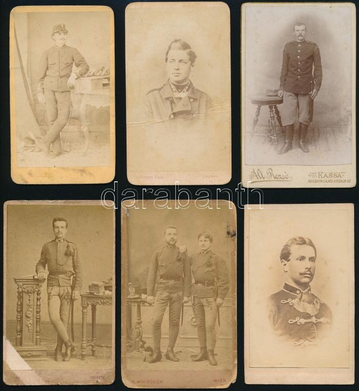 Leírás: cca 1860-1890 6 db, katonákat ábrázoló vizitkártya vegyes minőségben / soldiers on vintage photos