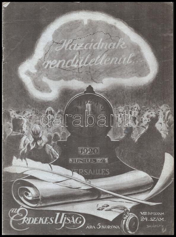1920. június 10. Az Érdekes Újság VIII. évfolyamának 24. száma, benne nagyobb képriport gróf Apponyi Albert jászberényi látogatásáról, a trianoni békeszerzÅ‘dés után, a hátsó borÃtó kissé hiányos, részben szétesÅ‘ állapotban, 24p