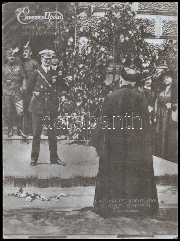 Leírás: 1920. szeptember 9. Az Érdekes Újság VIII. évfolyamának 37. száma, benne nagyobb képriport Horthy Miklós kormányzó magyarországi körútjáról, 24p
