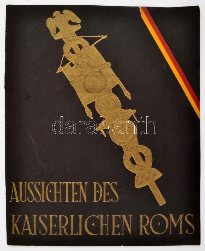 Leírás: 1937 Látnivalók a császári Rómában, német nyelvű képes prospektus, aranyozott borítóban