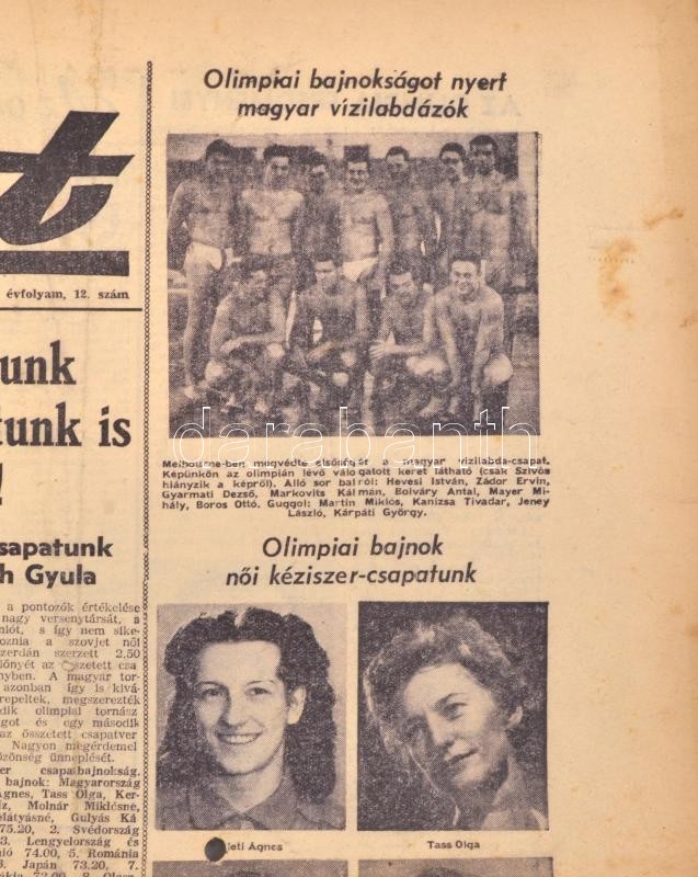 1956 Sport. I. évf. 3-13. sz., 1956. nov. 28-dec. 9., lyukasztás nyomo... https://www.darabanth.com/hu/374-Gyorsarveres/374.0/Mutargy-papirregiseg-egyeb/Nyomtatvanyok~30/1956-Sport-I-evf-3-13-sz-1956-nov-28-dec-9-lyukasztas-nyomokkal-felvagott-lapokkal-k~II2153169