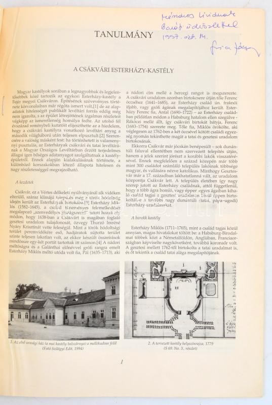 1997. Különlenyomat a Művészettörténeti Értesítő XLVI. 1-2. számából. Sisa József: A csákvári Eszterházy-kastély. Bp., Akadémia. Szerző által dedikált.