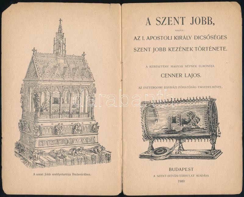 Cenner Lajos: A Szent Jobb ... Bp., 1900. Szent István társulat. 24p.... https://www.darabanth.com/hu/374-Gyorsarveres/374.0/Mutargy-papirregiseg-egyeb/Nyomtatvanyok~30/Cenner-Lajos-A-Szent-Jobb-Bp-1900-Szent-Istvan-tarsulat-24p-Kiadoi-papirboritekban~II2190886