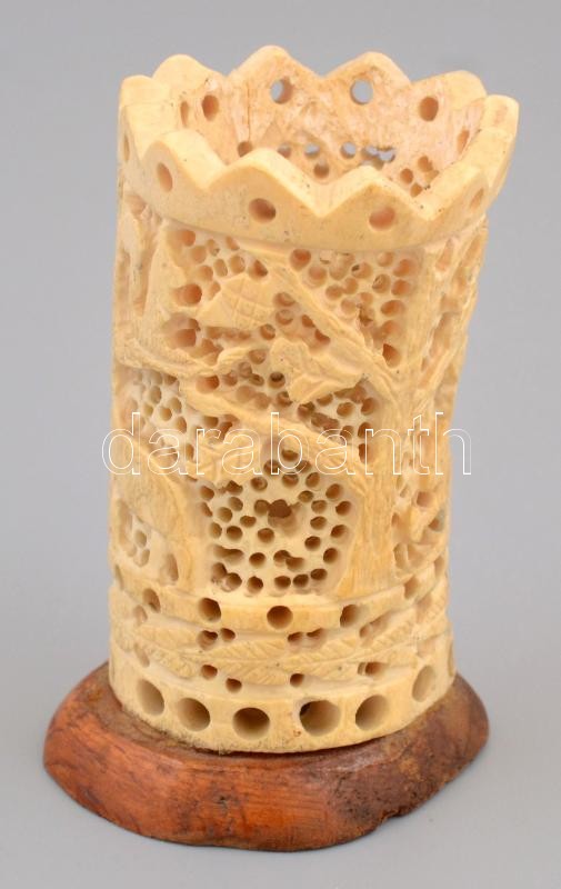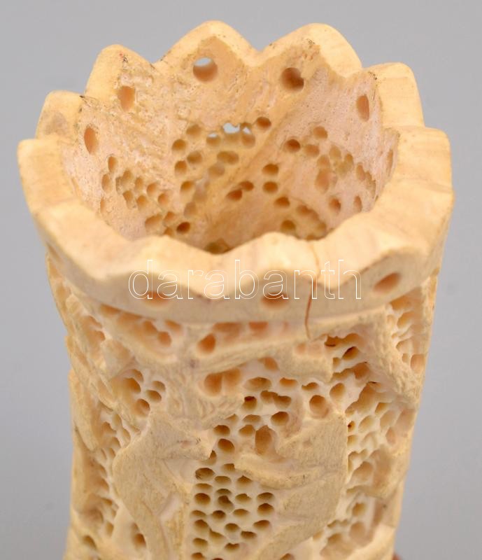 Leírás: Faragott, áttört csont cigaretta kínáló 9 cm