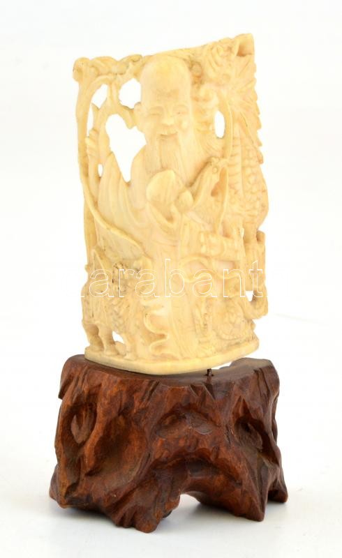 Leírás: Keleti bölcs. Faragott csont figura, fa talapzaton 12 cm