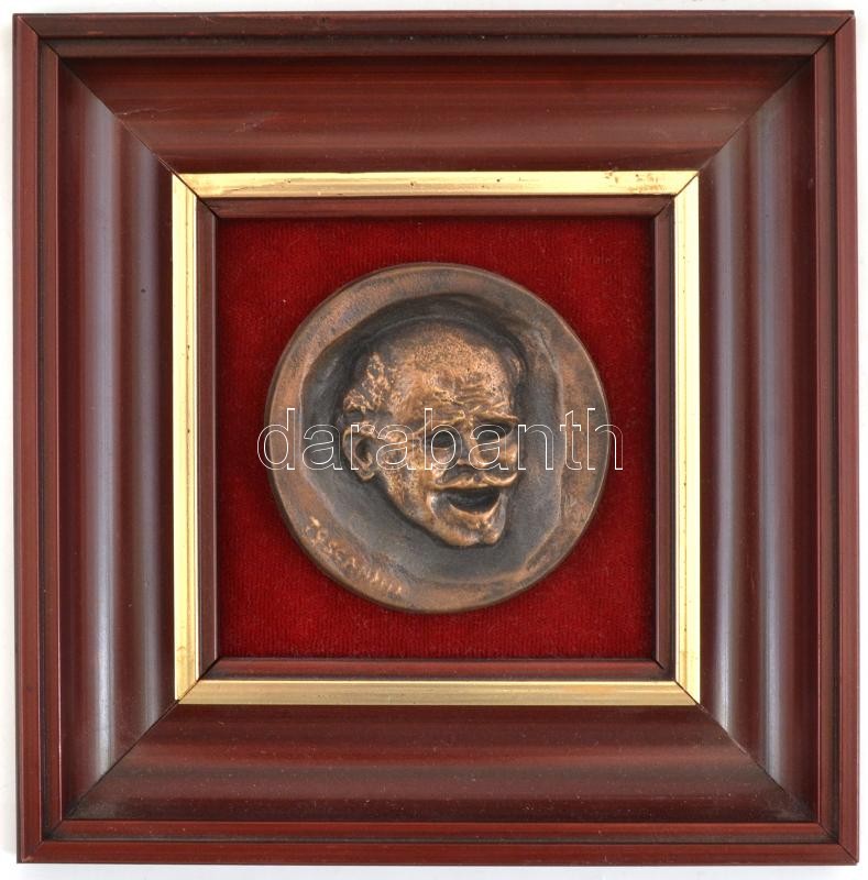 Leírás: Krasznai János (1930-): Toscanini. Bronz plakett, jelzett. Fa keretben, d: 6,5 cm