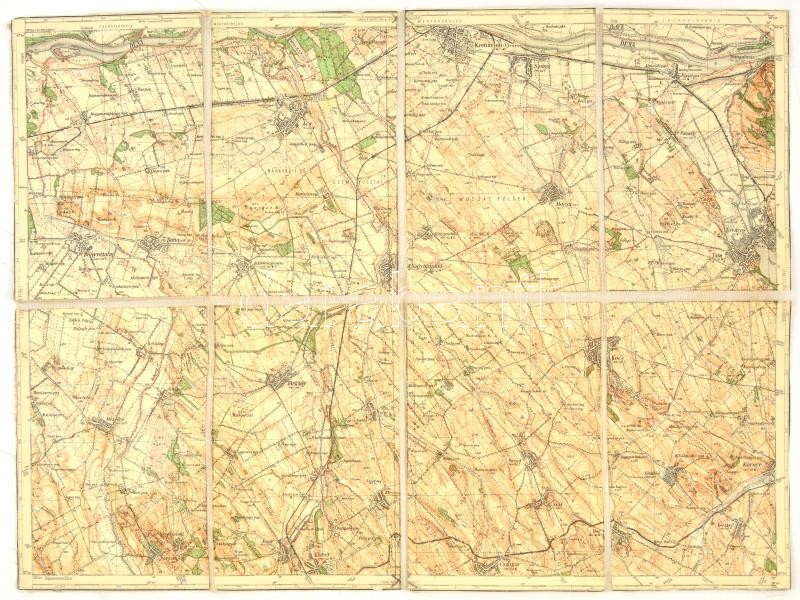 Leírás: Komárom és Tata (Nagyigmánd, Kocs, Tárkány, stb. települések) környékének katonai térképe, vászonra kasírozva, 40×53 cm